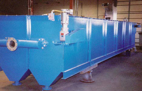 The traditional process for separation of free oil in wastewater is the use of a gravity separator designed per guidelines and recommendations of the American Petroleum Institute (API), publication #421. Flow distribution, surface loading rate (rise rate), tank geometry, effective surface oil removal are some of the important design considerations in Tenco Hydro’s API gravity oil separator. Oil characteristics such as specific gravity, viscosity and temperature are applied to Stoke’s Law to determine the design rise rate for capture of oil globules 150 microns or larger. Separator size is determined by influent flow rate and rise rate. Tank proportions and flow distribution are per API guidelines.