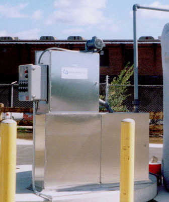 The Tenco Hydro Skim Kleen belt oil skimmer is an effective way to remove accumulated free-floating oils from places such as process tanks, sumps or manholes. Skim Kleen has proven to be effective, durable, and reliable over many years of operation both indoors and outdoors. The concept is simple. An endless belt is drawn through the accumulated oil on the water surface. Oil adheres to the belt and is carried up to the skimmer where it is doctored off the belt into a trough, and gravity discharged. The heavy duty Skim Kleen features stainless steel construction throughout. Belt material, width and length are selected for oil adherence and material compatibility.
